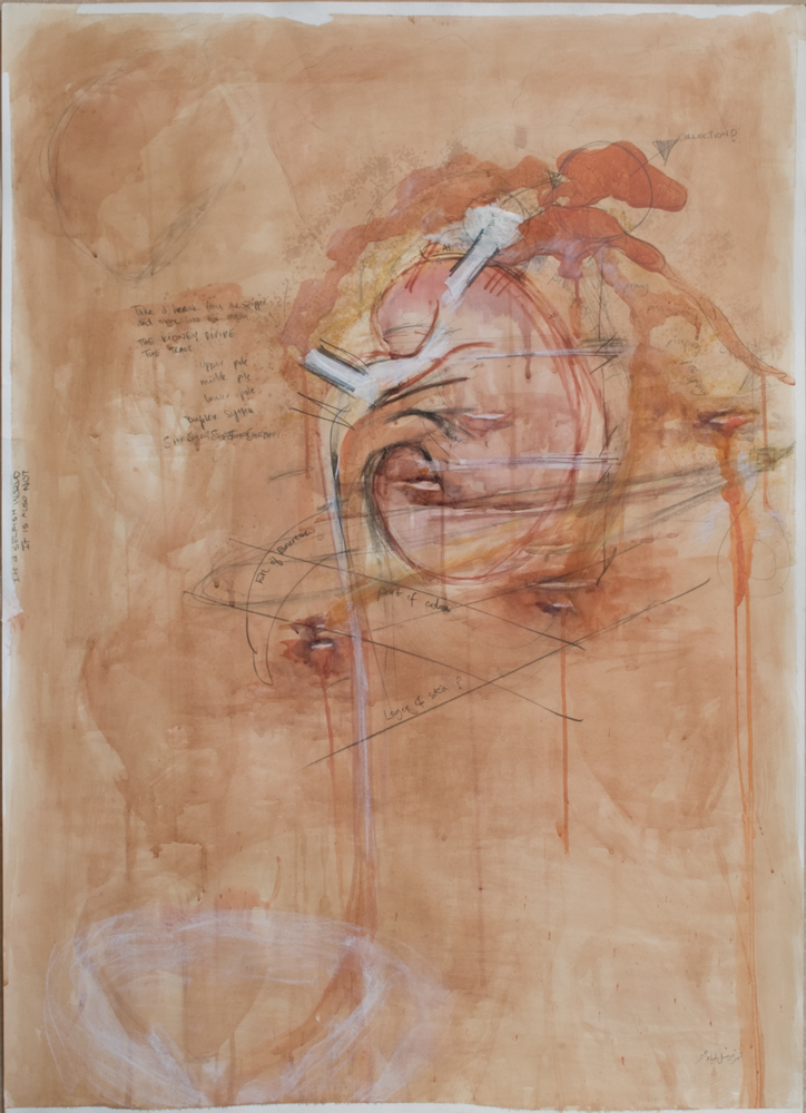 Mixed media and surgical tape on paper, 104 x 75cm, 2009